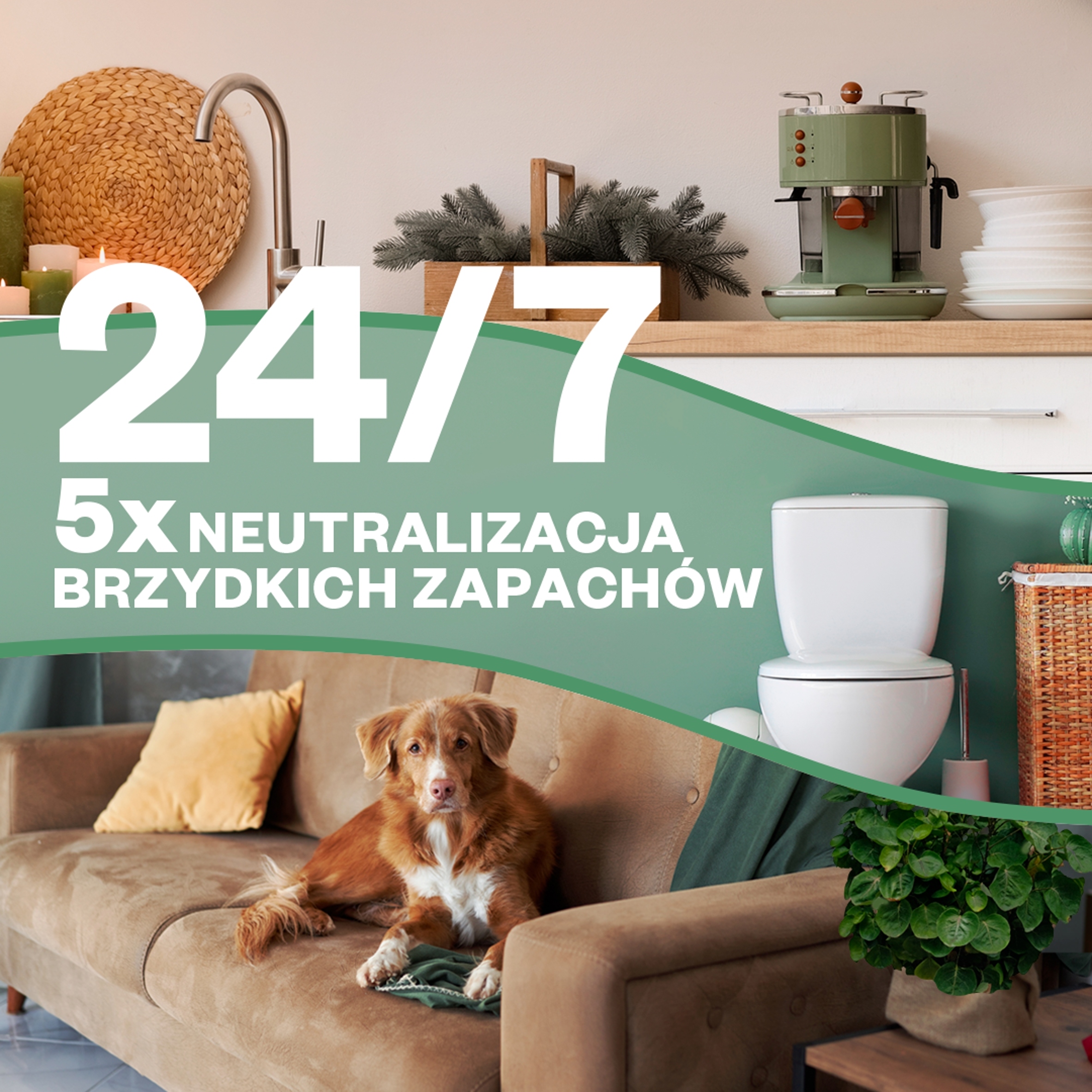 - Odświeża powietrze i neutralizuje nieprzyjemne zapachy 24/7