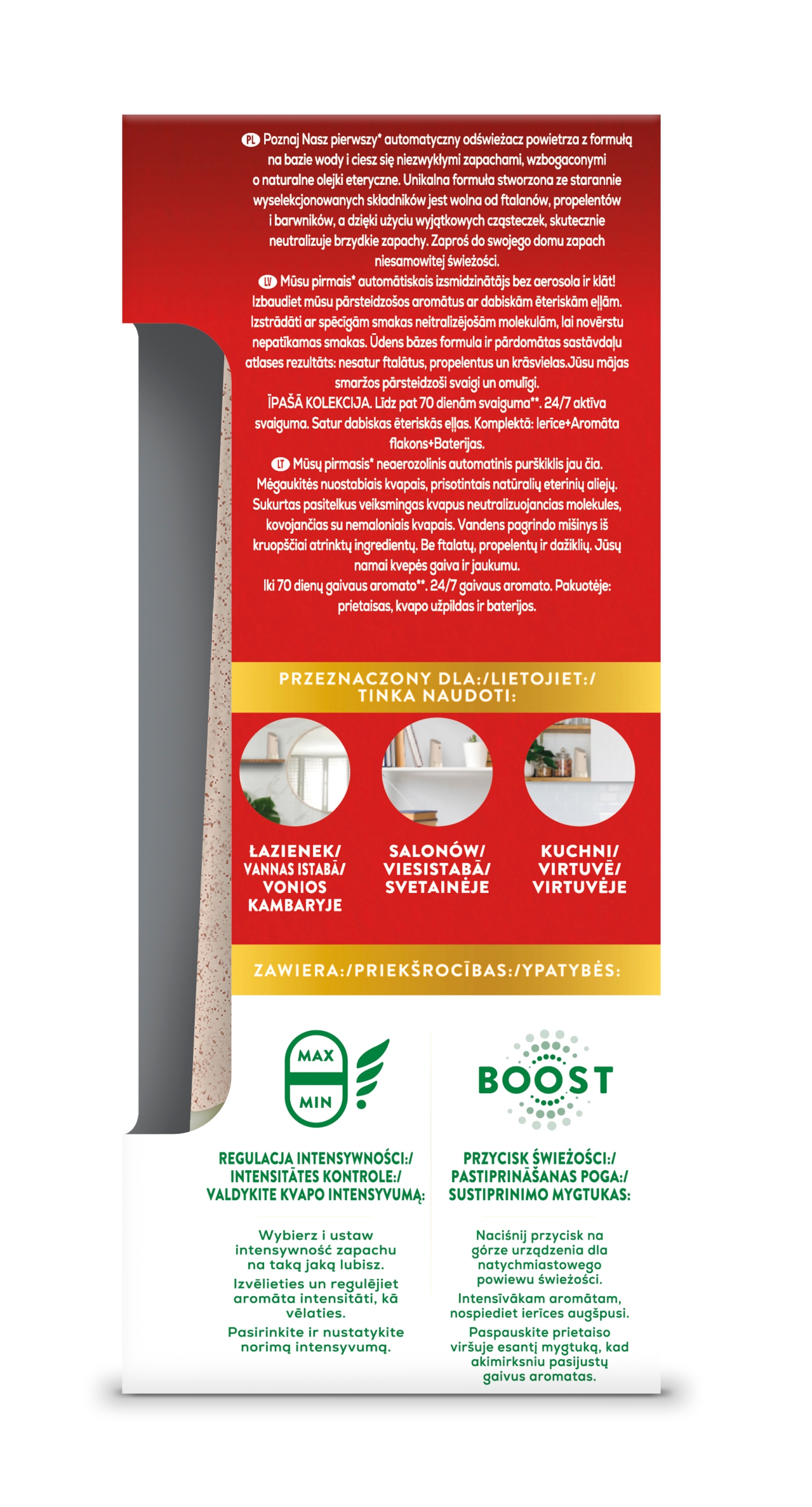 - Przycisk Instant Boost – zapach na życzenie