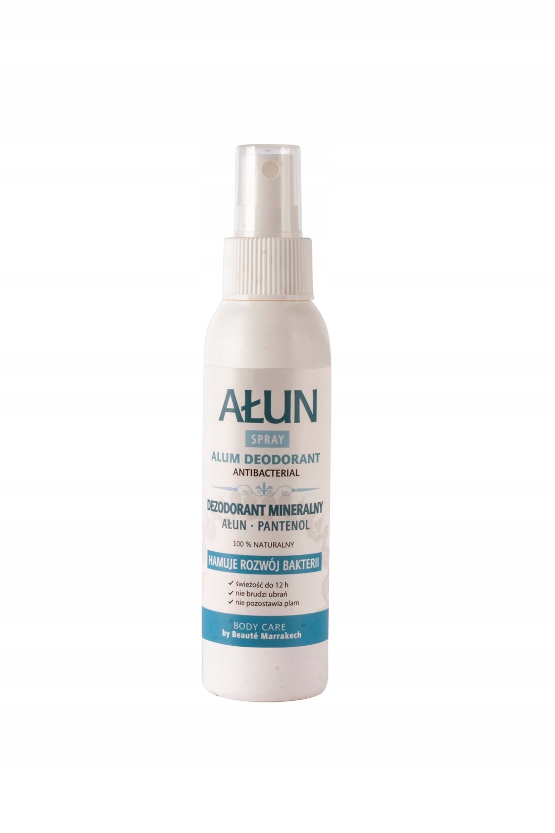 Ałun to naturalny minerał górski składający się ze związków glinu, jednak w przeciwieństwie do soli glinu występujących w dezodorantach nie przenika przez skórę, tworzy jedynie cienką warstwę na jej powierzchni. Wykazuje działanie ściągające, antyseptyczne i przeciwbakteryjne, dzięki czemu doskonale zwalcza przyczyny powstawania przykrego zapachu potu. Działa antybakteryjne i dezynfekująco.