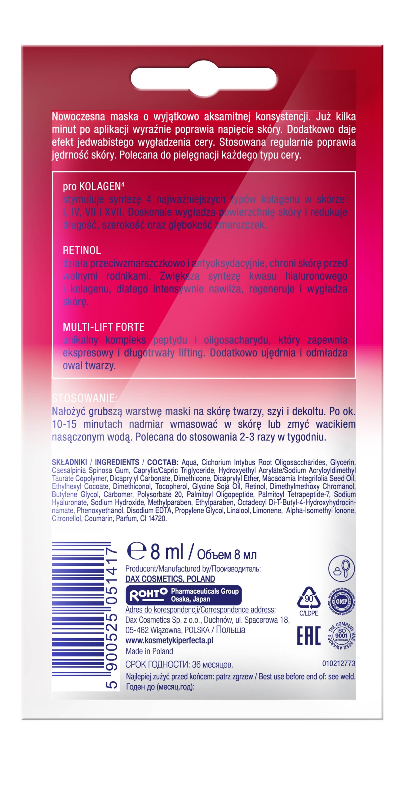 9 kwietnia 2026Perfecta Multikolagen Retinol, maska na twarz, szyję i dekolt, 8 ml